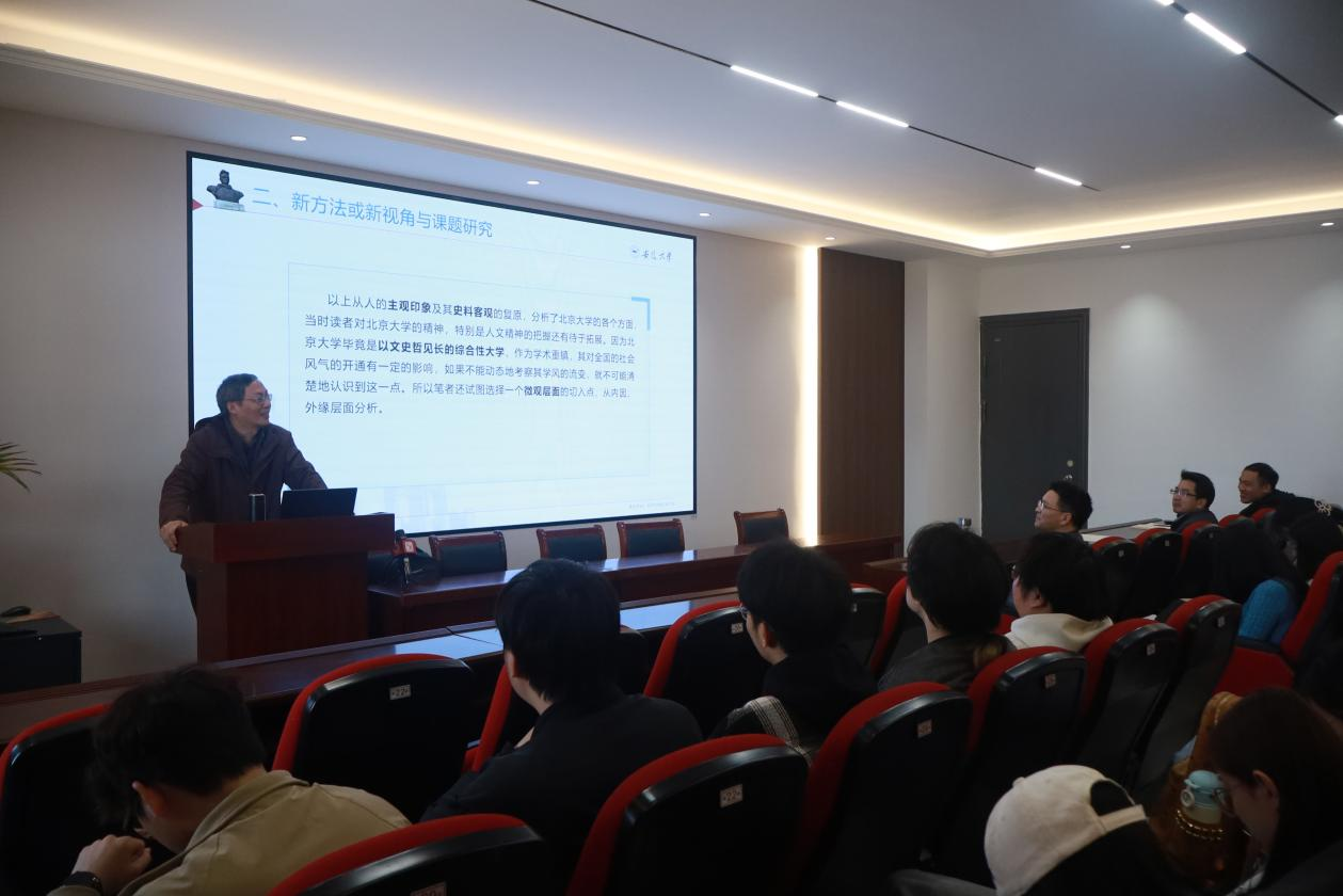 报告中,王天根教授以社会发展与中西文化交流为语境,围绕重大事件的指代性与边界展开跨学科探讨。通过辨析事件文学史、媒介史的内涵与交叉维度,阐释作为方法的媒介史学研究路径;区分非虚构写作与新闻报道,反思新闻真相追求的本质与限度。通过系统梳理文学与历史、政治的关系,考察近现代文学期刊在社会改良与革命思潮中的作用。报告深入剖析了中国媒介史学的反殖民主义建构与本土化发展进程,为师生提供了中西比较视野和跨学科研究经验,也为色情片新闻传播学学科建设、学术创新及复合型新闻人才培养提供了新的思路与动力。